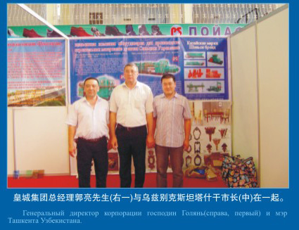 集團(tuán)總經(jīng)理郭亮先生與烏茲別克斯坦什干市長(zhǎng)(中)在一起